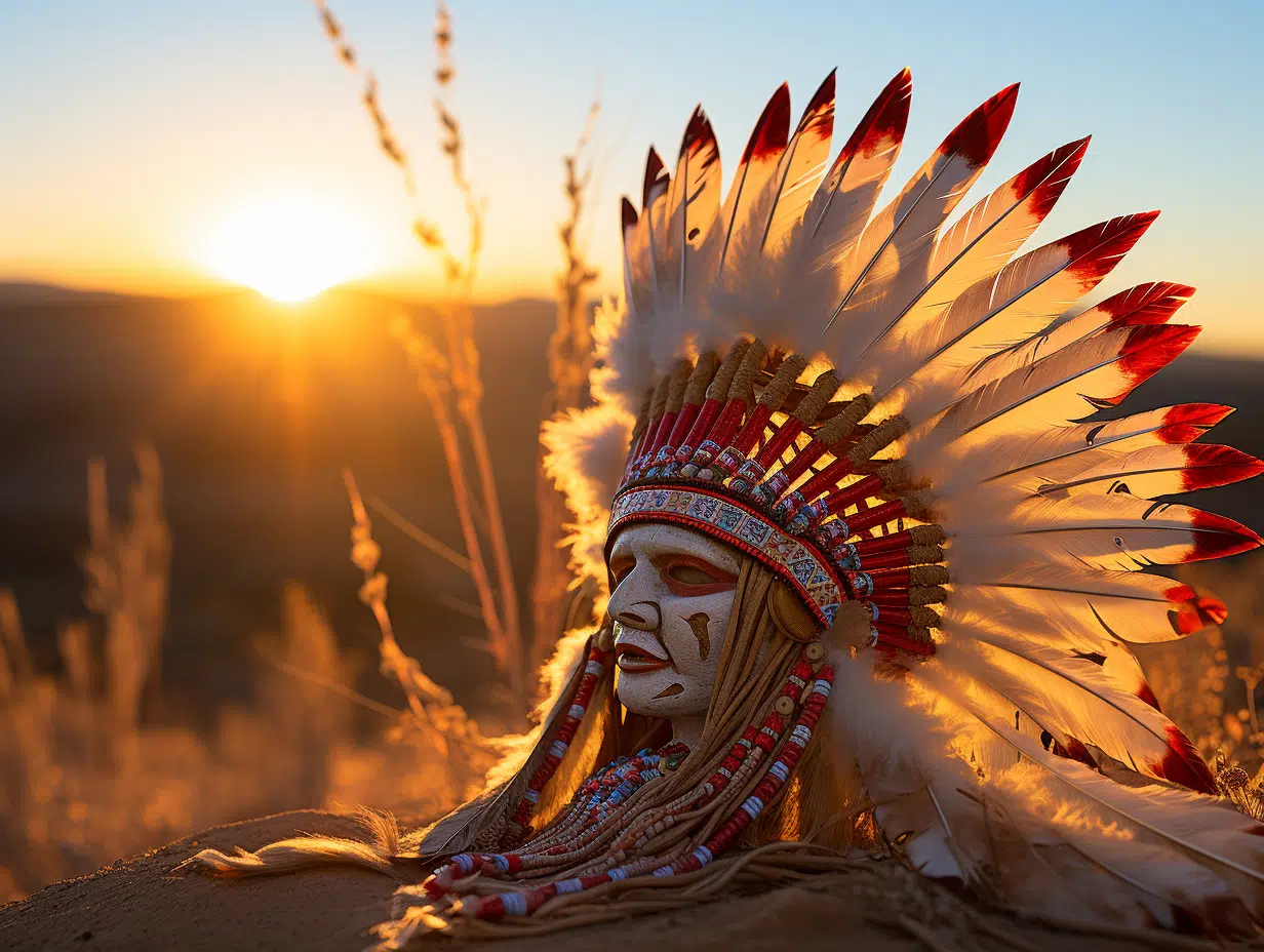 Le pow wow, événement social et culturel d’importance, voit se déployer des coiffes de plumes somptueuses. Ces parures, bien plus que de simples ornements, dénotent le rang et l’influence de celui qui les porte. Elles sont le reflet d’un parcours personnel et d’une histoire collective, une narration muette mais éloquente de l’identité et de l’honneur de la personne.